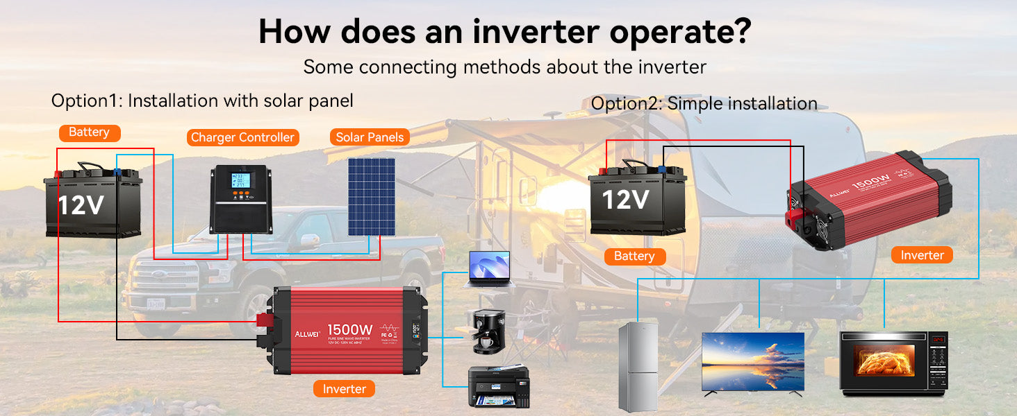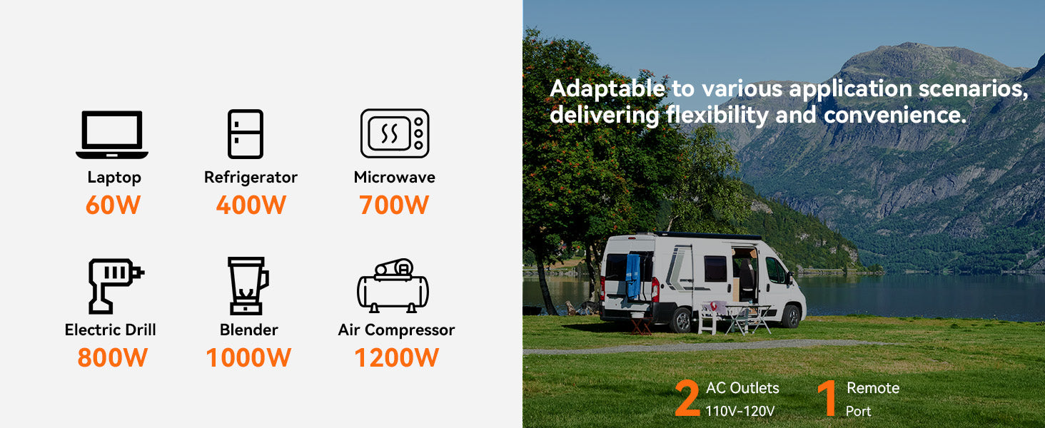 Works with various 12V batteries, perfect for RVs, camping, off-grid setups, and emergency power needs. Provides reliable power for daily use or during power outages.