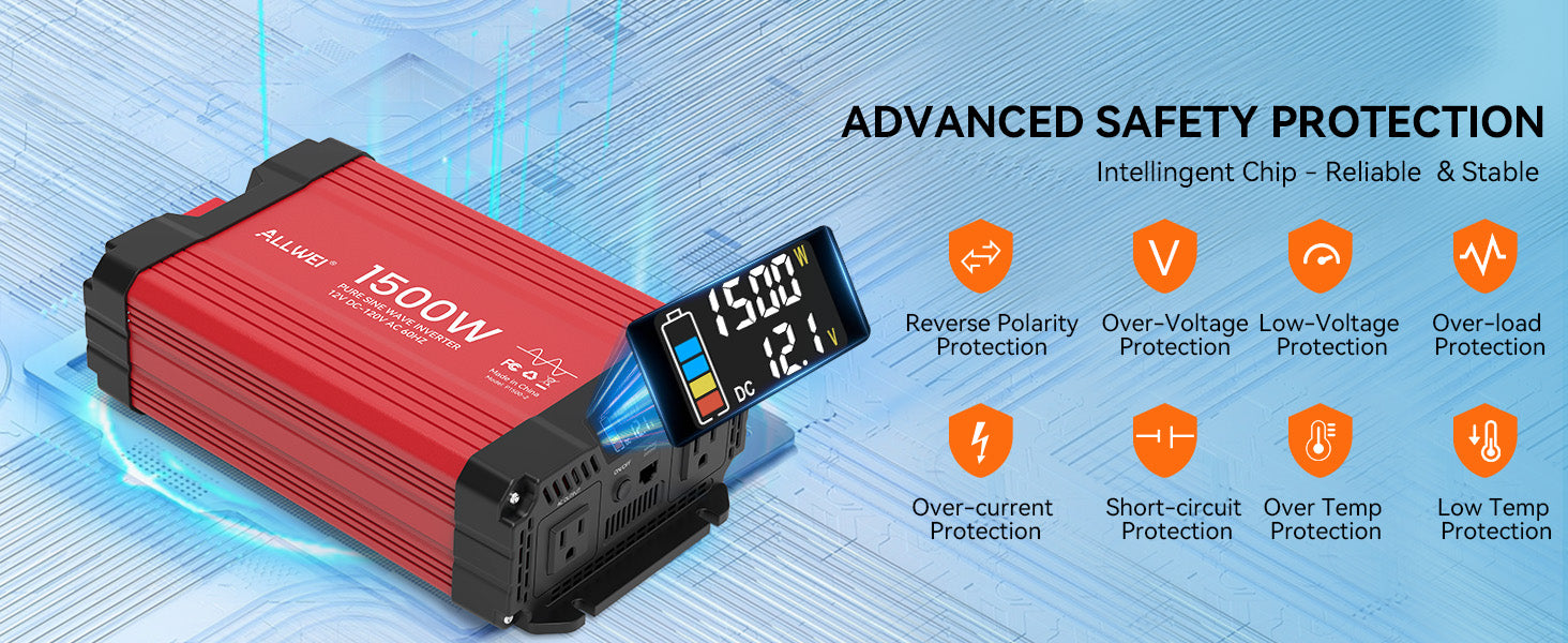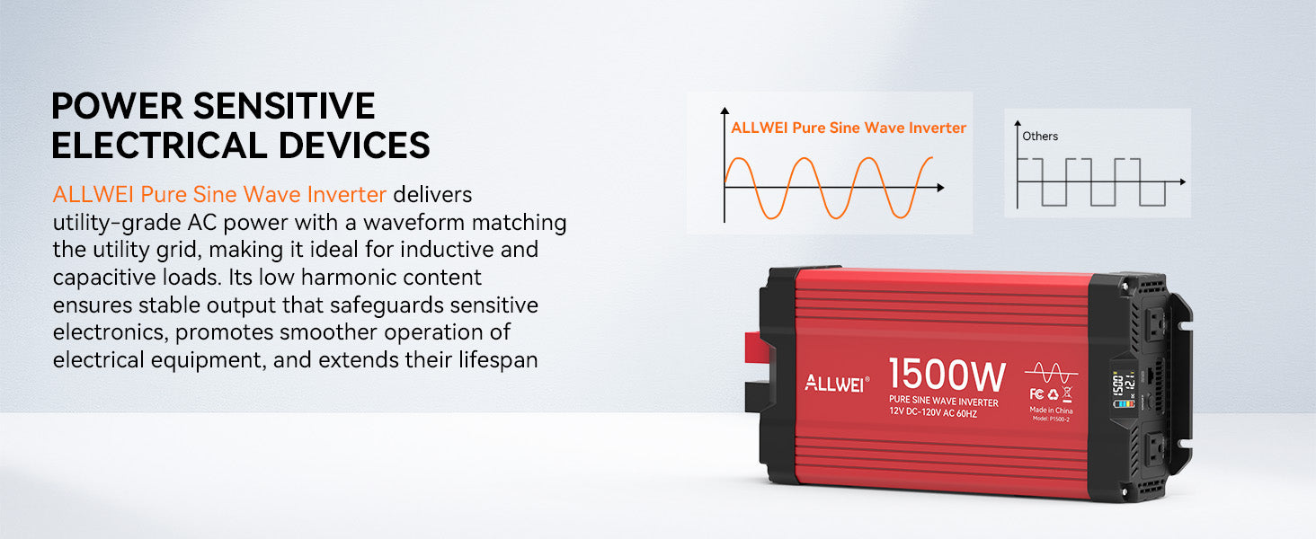 ALLWEI 1500W Pure Sine Wave Inverter 12V to 120V AC