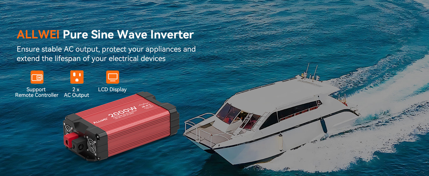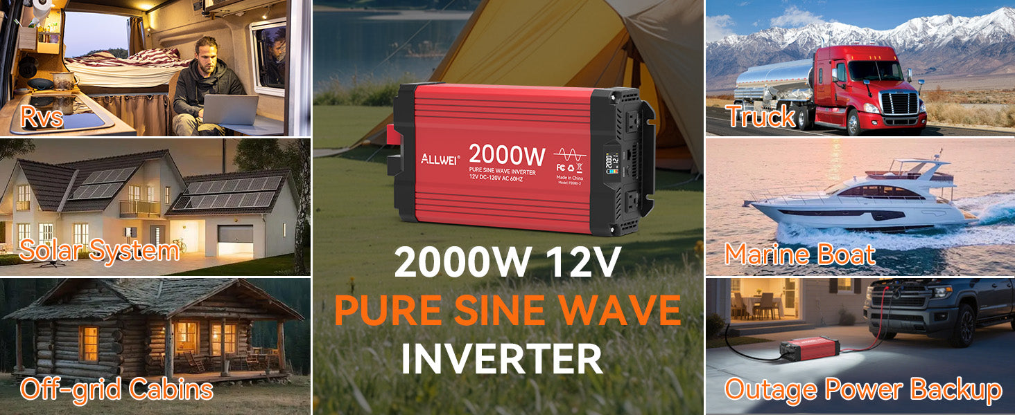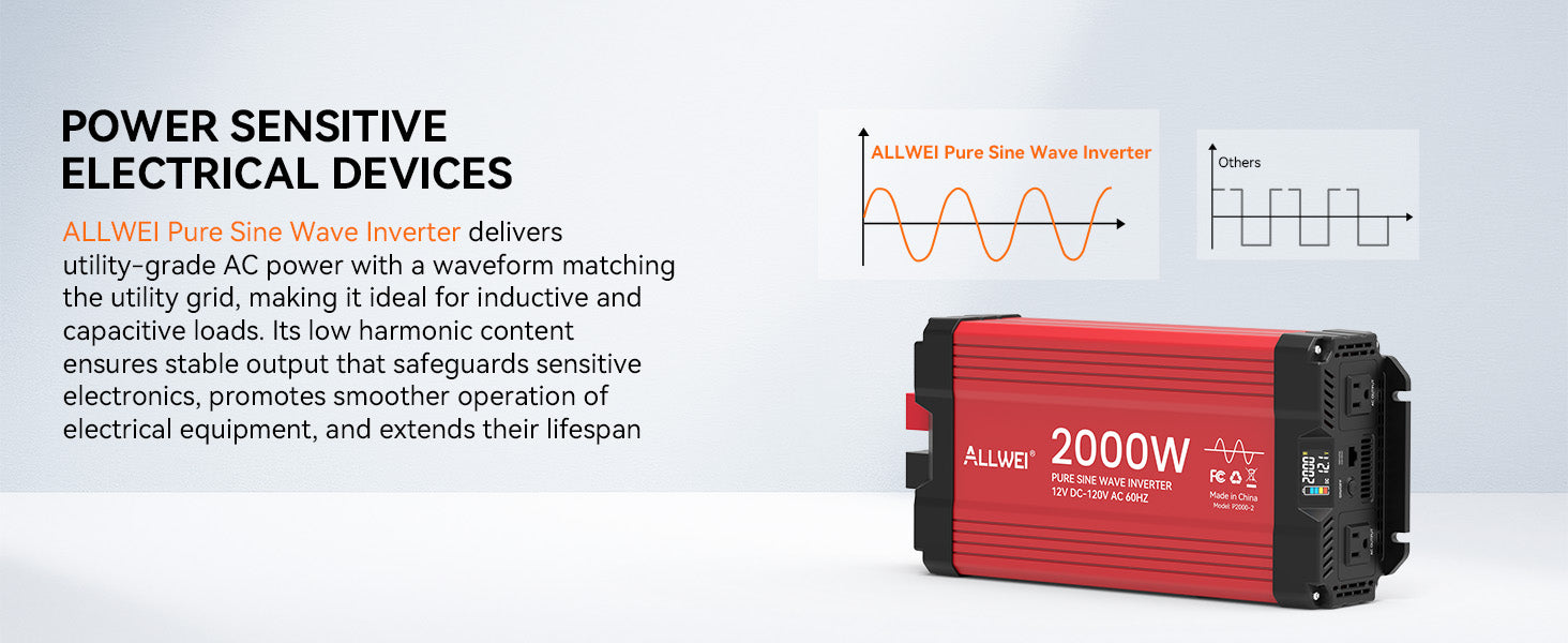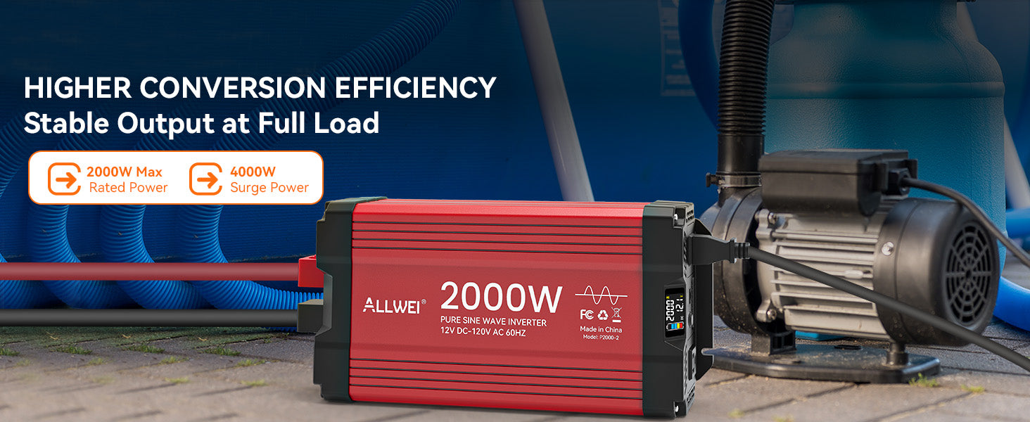 ALLWEI 2000W Pure Sine Wave Inverter - 12V DC to 120V AC Power Converter