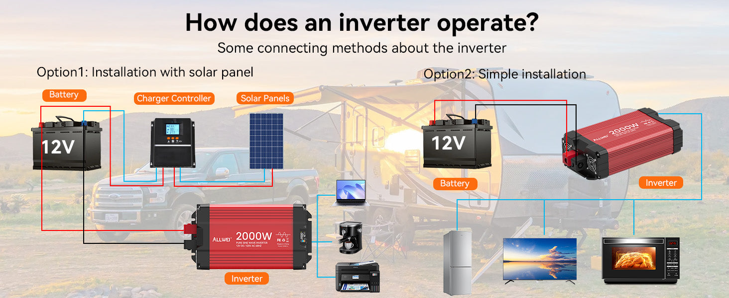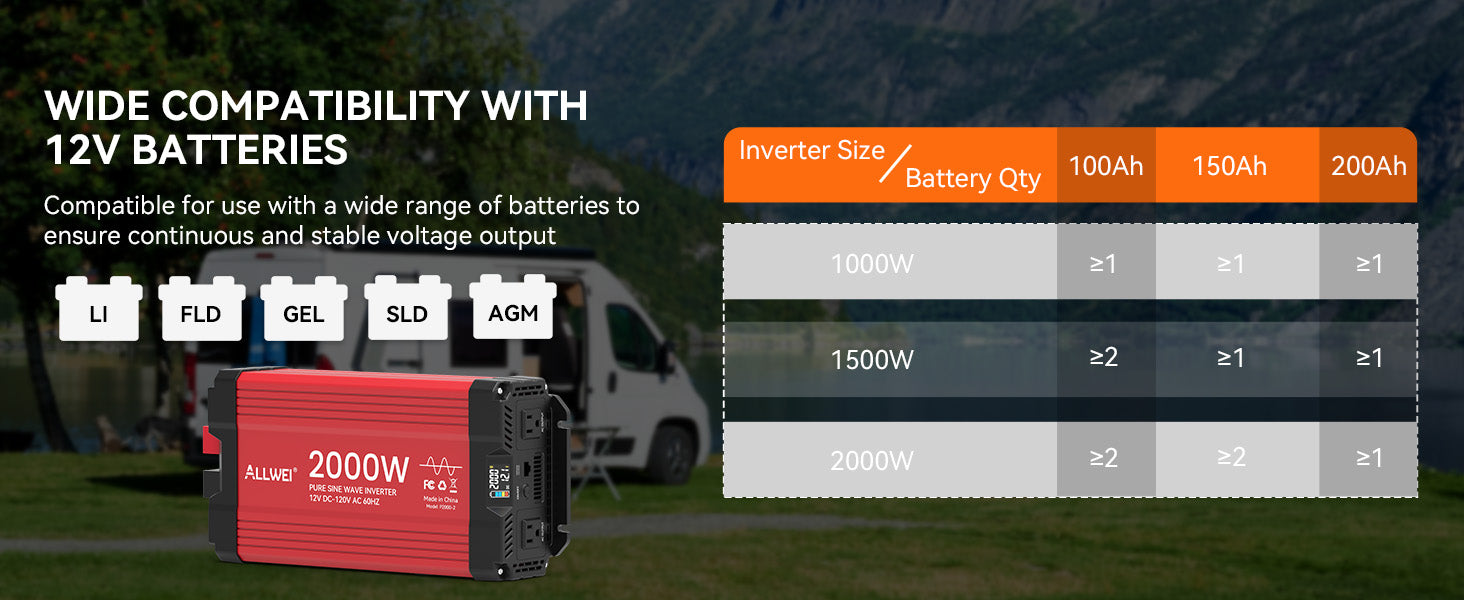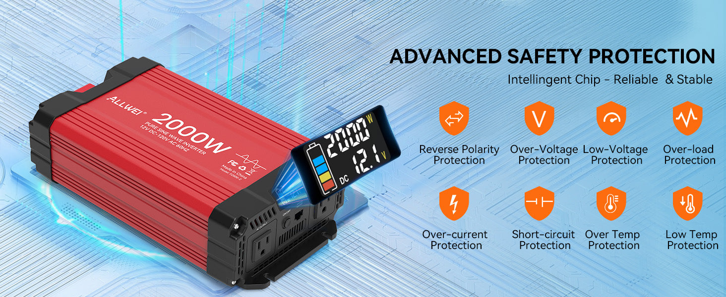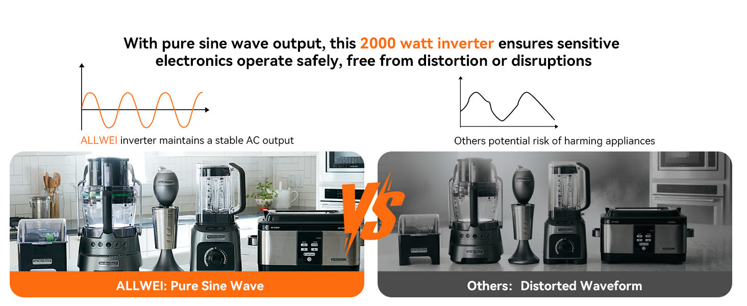 ALLWEI 2000W Pure Sine Wave Inverter - 12V DC to 120V AC Power Converter