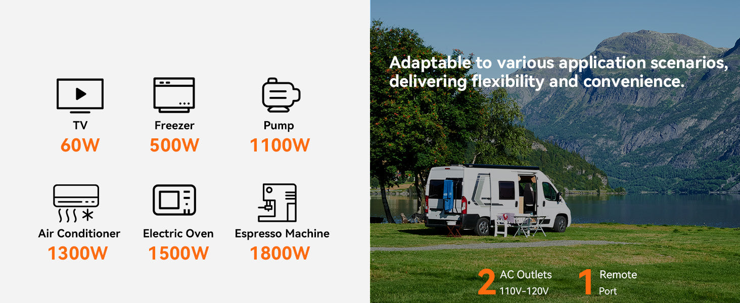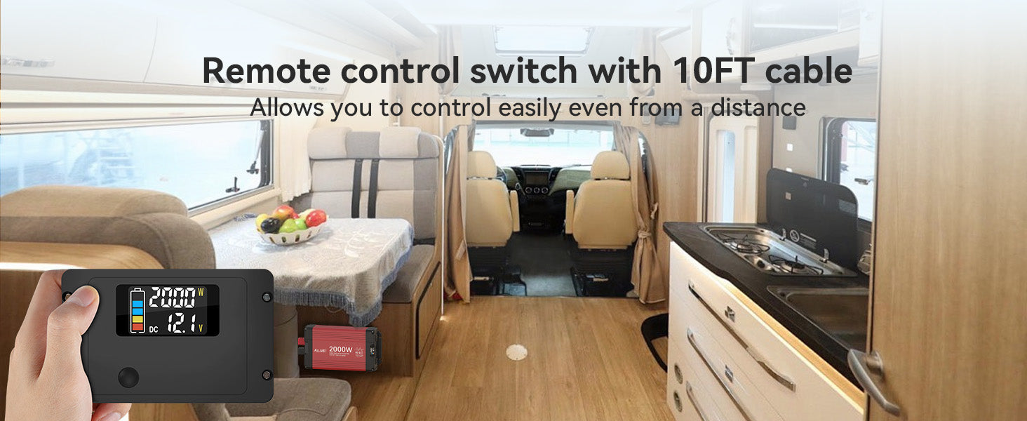 Comes with a 10-foot cable for remote operation. Monitor battery levels and power the unit on/off easily. Ideal for RVs, camping, off-grid use, and emergency power supply.