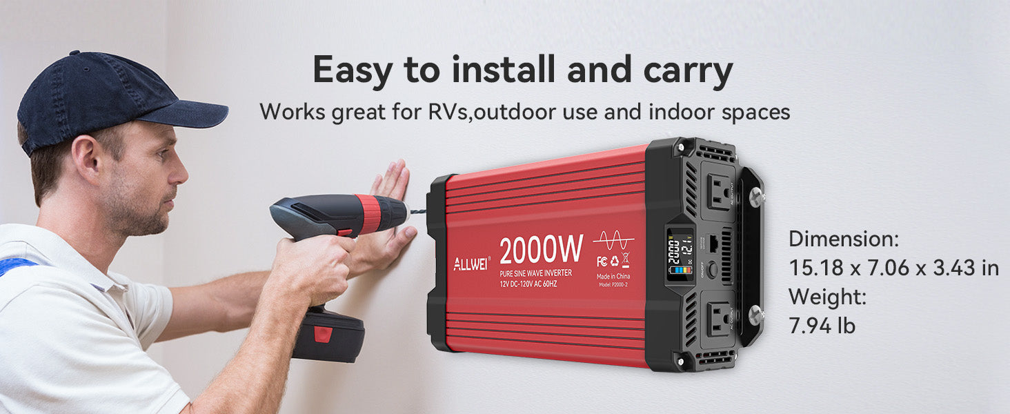 ALLWEI’s 12V to 120V pure sine wave inverter provides 2000W continuous power and 4000W peak surge. It offers over 90% efficiency to reduce energy loss. The durable aluminum alloy case ensures reliability in harsh conditions.