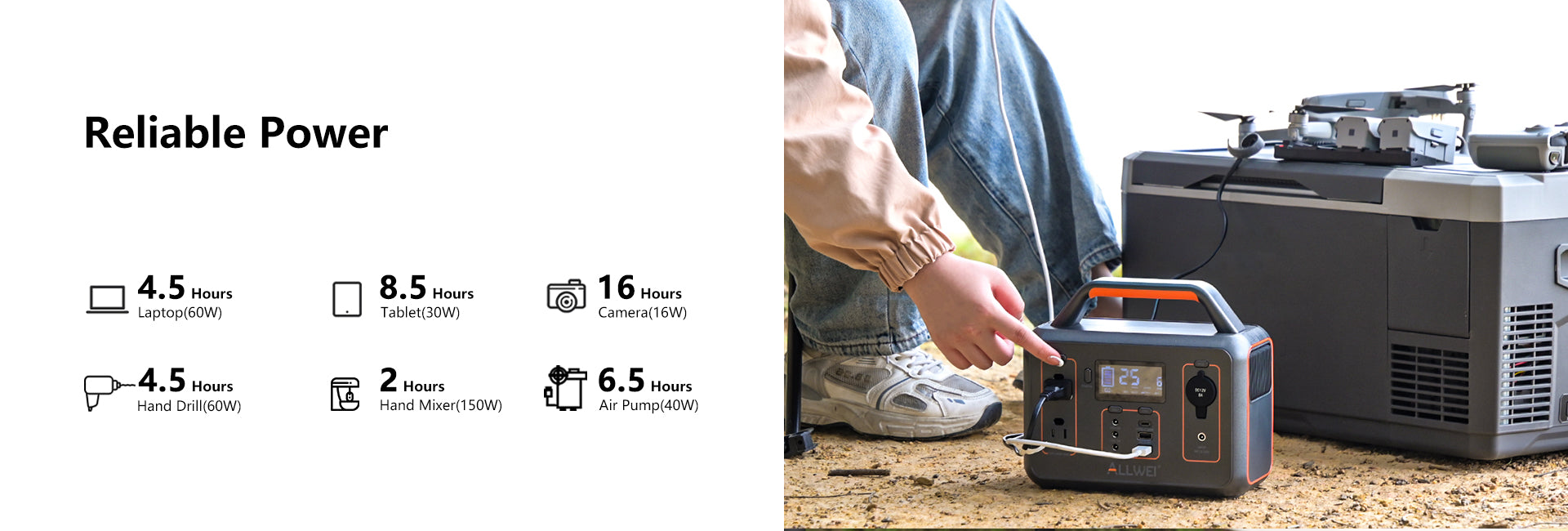 The lightest and most portable outdoor generator on the market. Weighing just 6.4 lbs, our power station packs a 280Wh capacity and a powerful 300W output. With a compact design that fits in one hand, you'll have reliable power for all your camping trips, RV adventures, and emergency needs.